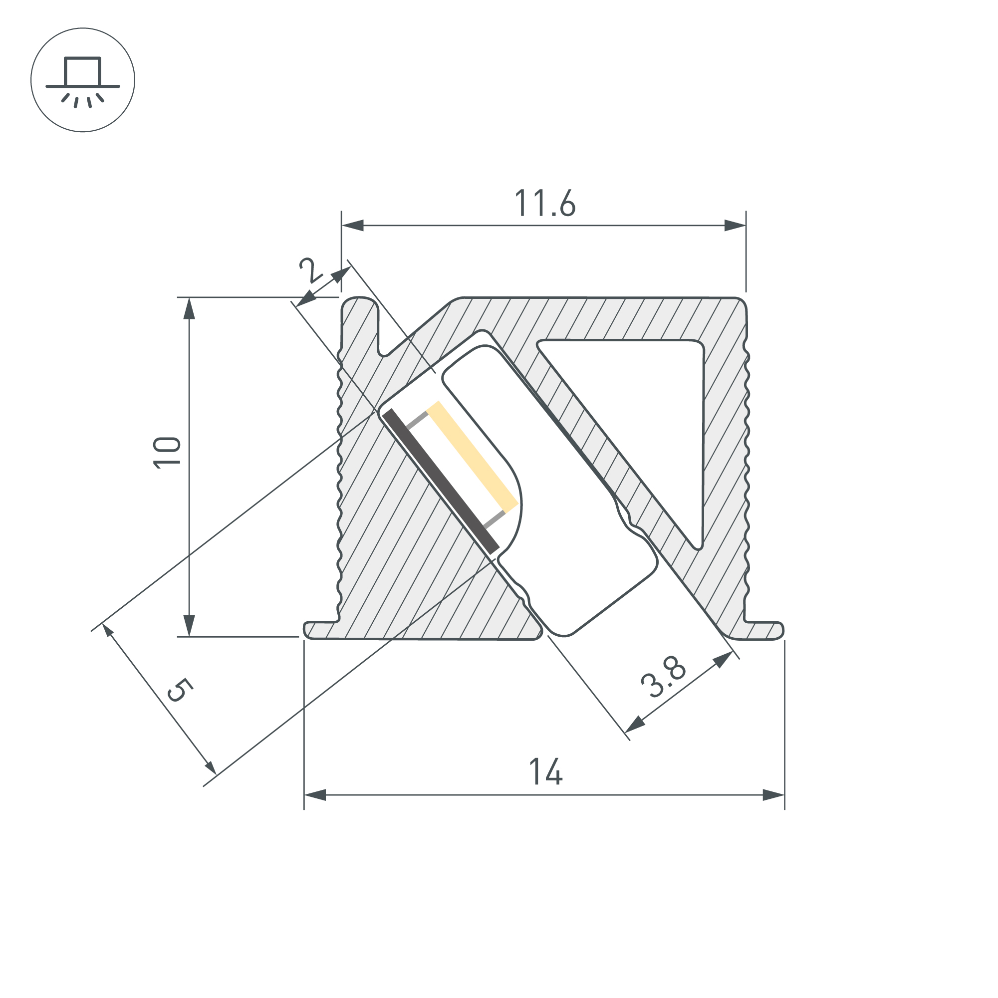 Алюминиевый анодированный профиль для светодиодных лент и линеек с боковым свечением. Цвет - серо-оливковый. Габаритные размеры (L×W×H): 2000x14x10 мм, паз для установки 11,6 мм. Ширина площадки для ленты 5 мм. Экраны и заглушки приобретаются отдельно. Цена за 1 метр.