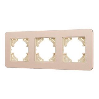 Рамка алюминиевая на 3 поста, под встраиваемый механизм. Цвет - золотой с Soft-Touch покрытием. Среднего уровня герметичности IP20. Ориентация монтажа - горизонтальная (основным ориентиром служат посадочные выступы для накладки механизма).